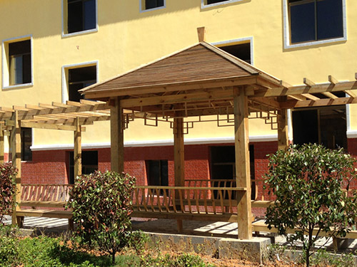 防腐木涼亭在夏季能提供不錯的遮陽效果,其天然木質結構與合理設計共同構筑起舒適的戶外休憩空間。防腐木經過特殊處理后,木材內部孔隙被有效封閉,表面形成致密保護層,既能抵御紫外線分解,又能減少熱傳導。實測數據顯示,在正午陽光直射下,防腐木頂棚下方的溫度比露天區域低8-12℃,配合木材本身的微孔結構,可形成自然通風循環,避免悶熱感積聚。